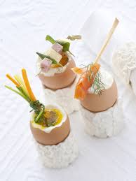 Spezzate a metà i grissini e avvolgete ciascuno con mezza fetta di salmone e ciuffi di aneto; mettete le uova in acqua fredda e calcolate 3 minuti dal bollore.