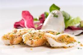 Pulite le seppie, eliminate la sacca con l'inchiostro, lavatele, riempitele con i gamberetti, adagiatele in una teglia (rivestita con carta da forno), cospargetele con il composto di pangrattato e infornate a 200°C. per 8 minuti.