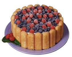 Sformate la charlotte, decoratela con il resto della frutta e la panna.